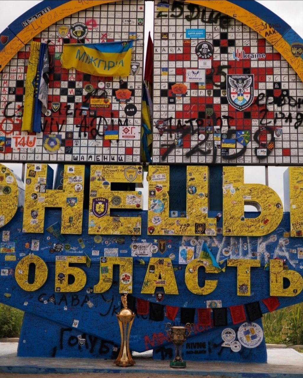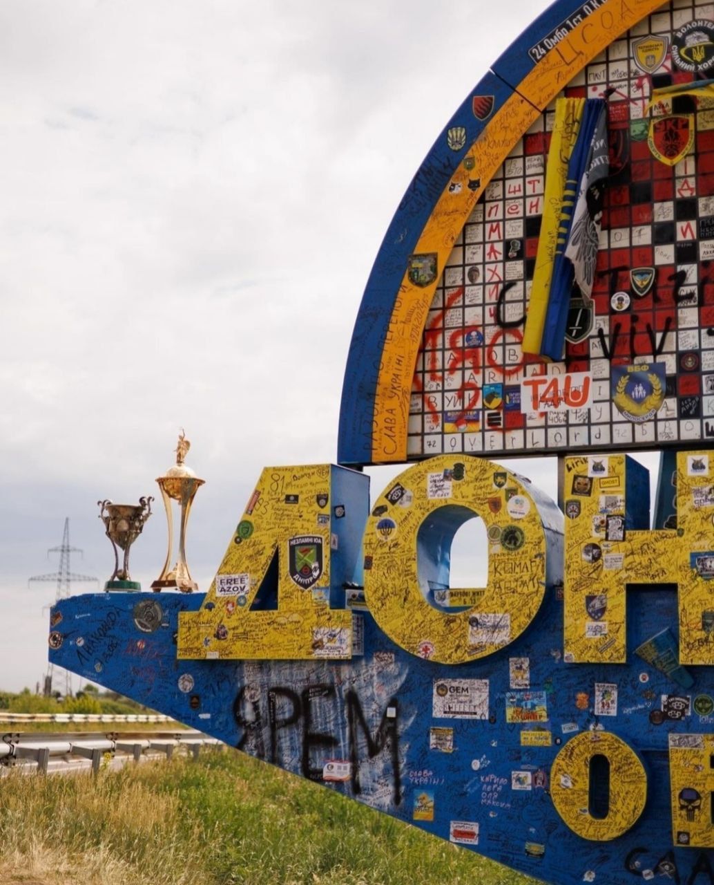 Трофеї Шахтаря біля стели на в'їзді в Донецьку область: фото з інстаграму клубу