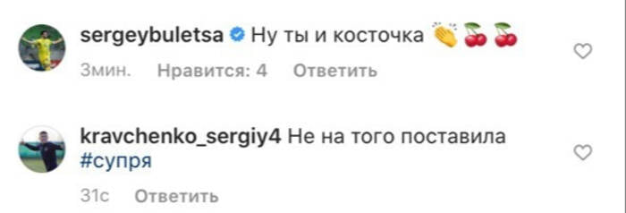 У свою чергу, капітан "Дніпро-1" Сергій Кравченко спочатку написав: "Не на того поставила", а після додав: "Шкода Бондаря".