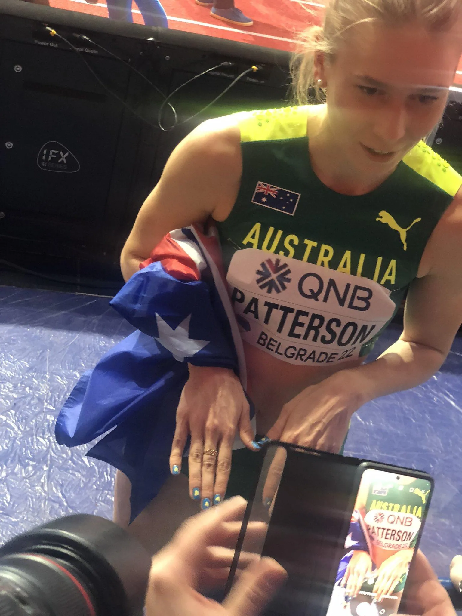Австралійська стрибунка у висоту пишається "золотом" Ярослави. Відзначимо, цікавий жест підтримки від Паттерсон. Елеанора зробила манікюр на честь України – сині нігті з жовтими сердечками.