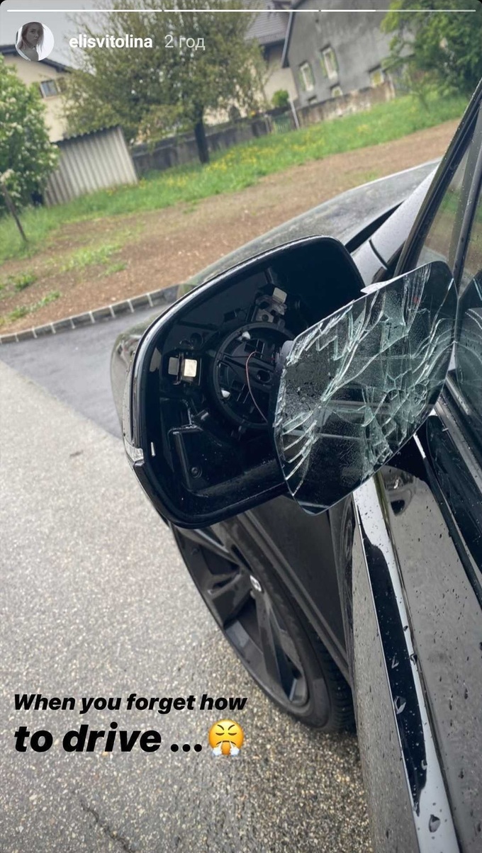 Світоліна зізналася своїм фанатам в Instagram, що на карантині трохи втратила свої водійські вміння. На підтвердження прикріпила фотографію розбитого бічного дзеркала.