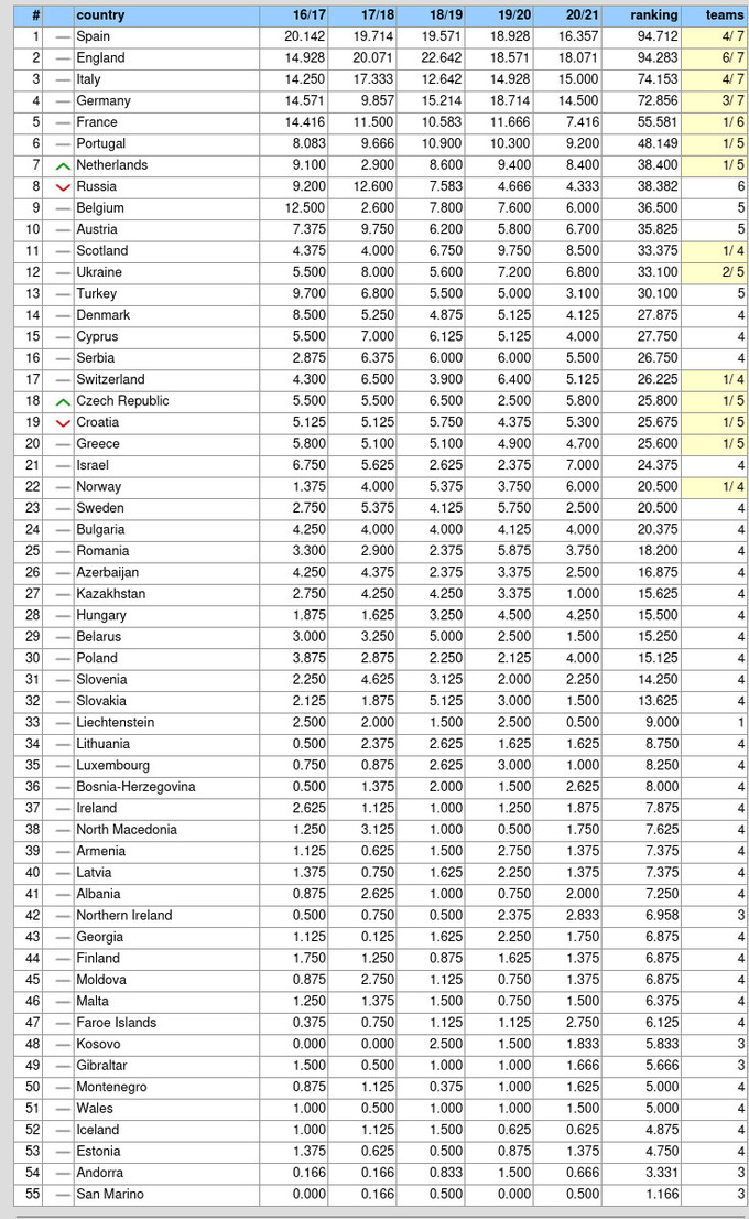 Таблиця коефіцієнтів УЄФА (станом на 12 березня)