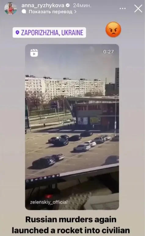 Більшість з них поширили відео з публікації Президента України Володимира Зеленського. На цих сторіс спортсмени ставлять хештеги "Росія – країна-терористка", пише 24 Канал.