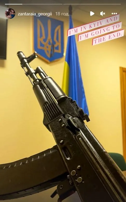 На своїй сторінці в інстаграмі спортсмен виклав сторіс, у якому показав автомат на фоні українського прапора та герба.