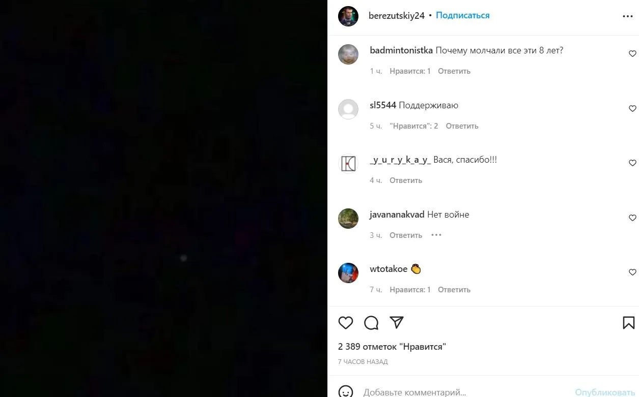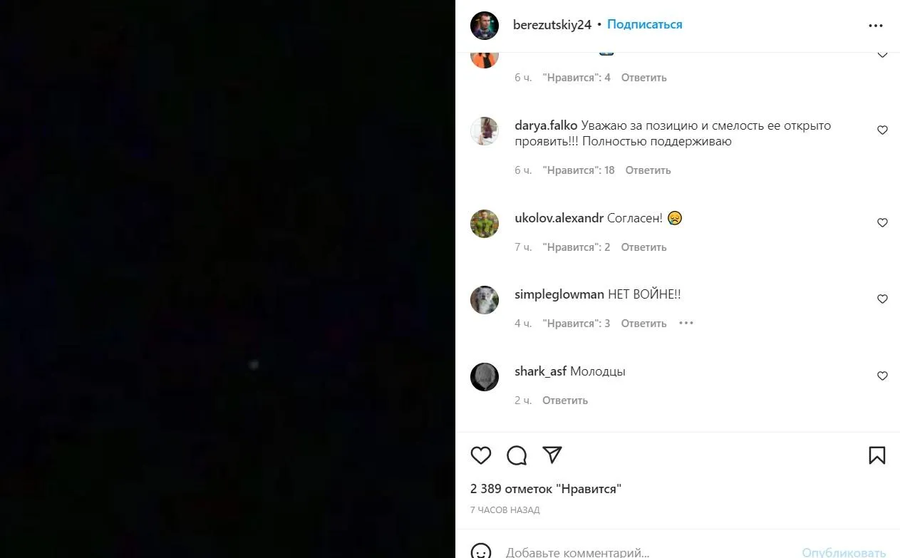 Березуцький не був багатослівним, він написав у своєму інстаграмі: "Ні війні".