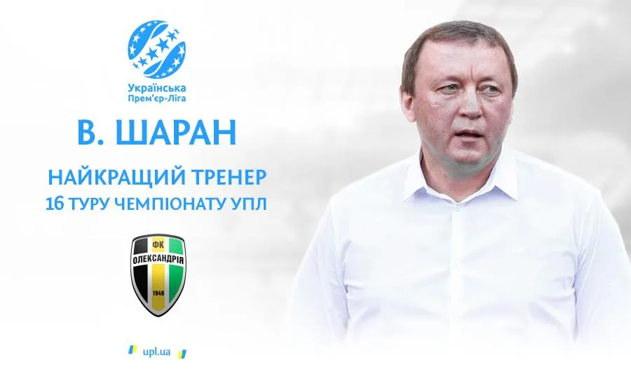 Володимир Шаран – найкращий тренер 16 туру УПЛ / УПЛ