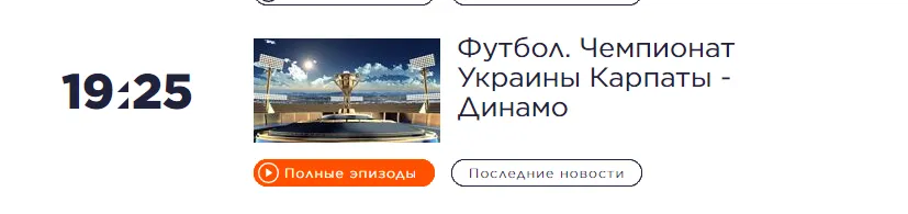 У телепрограмі каналів "Футбол 1/2" назву матчу не вказано, однак на 19:25 заплановано початок трансляції матчу УПЛ. У цей час починається тільки зустріч "Карпат" і "Динамо".