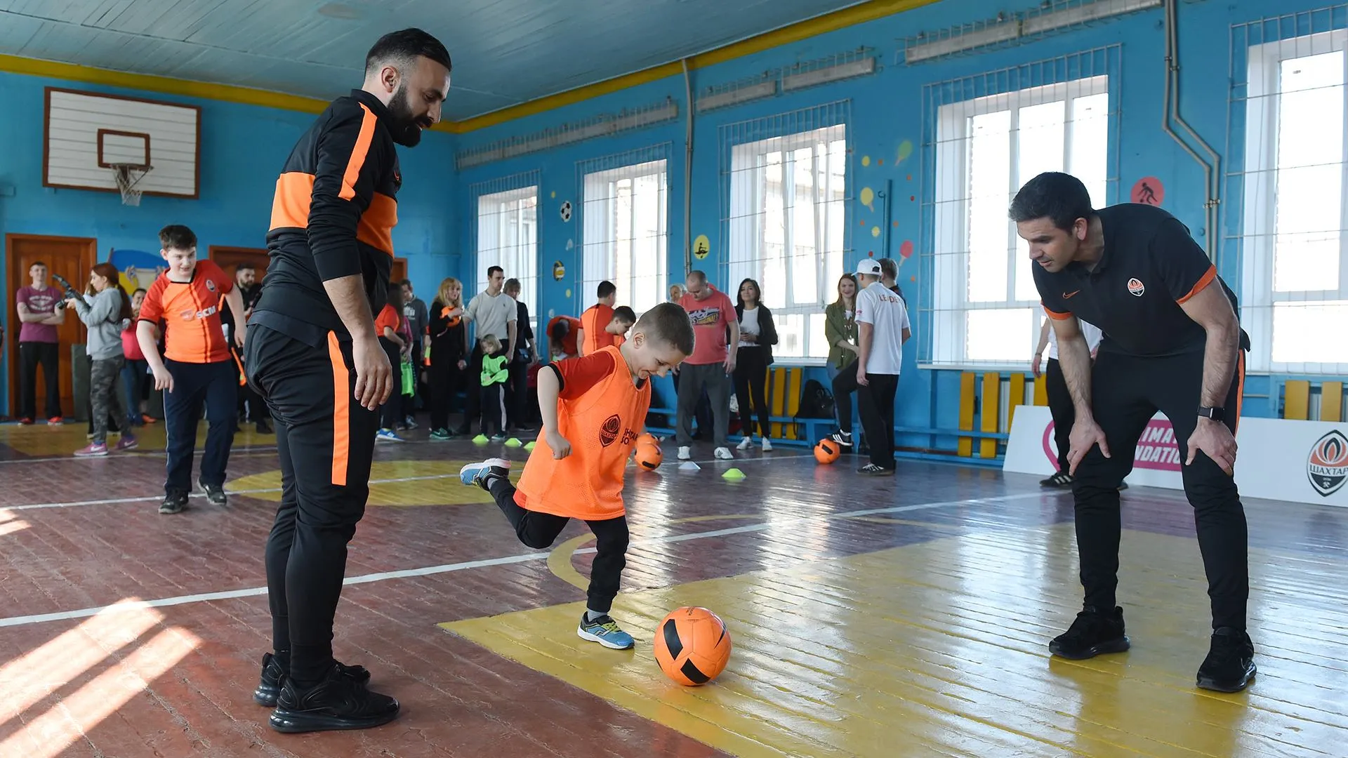 Представники "Шахтаря" під час занять з дітьми (фото: ФК "Шахтар")