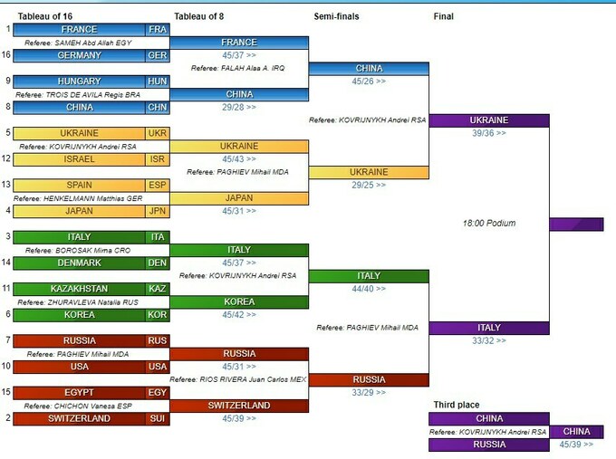 - У перший день Україна переграла Швецію (45:20) і Ізраїль (45:43), а у другий день взяла верх над Японією (29:25) в чвертьфіналі і Китаєм (39:26) в півфіналі.