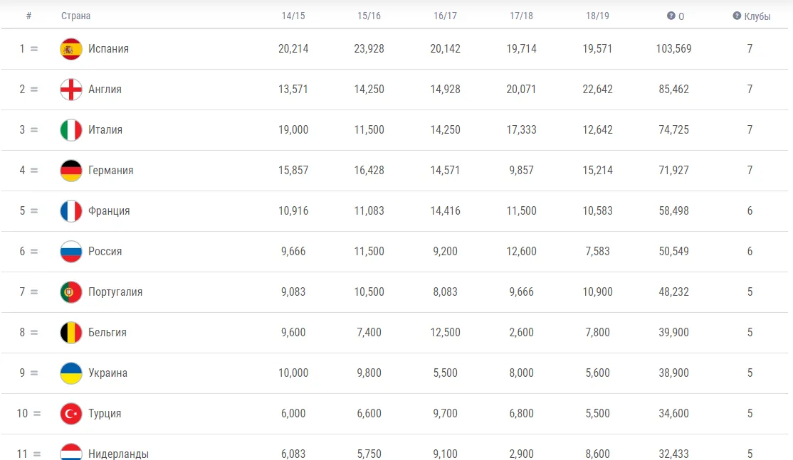 Згідно таблиці коефіцієнтів УЄФА, Україна може покинути топ-10 за підсумками наступного сезону країни.