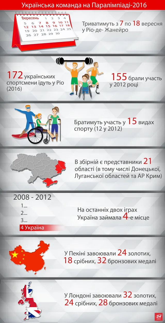 Урочиста церемонія відкриття Паралімпіади на легендарному стадіоні "Маракана" розпочнеться о 18:00 за місцевим часом (00:00 за київським). Братимуть участь у іграх і наші спортсмени – цьогоріч українська делегація буде рекордно великою – 172 спортсмени змагатимуться за медалі у 15 видах спорту.
