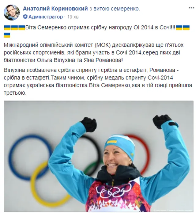 Все через дискваліфікацію росіянки Ольги Вілухіної.