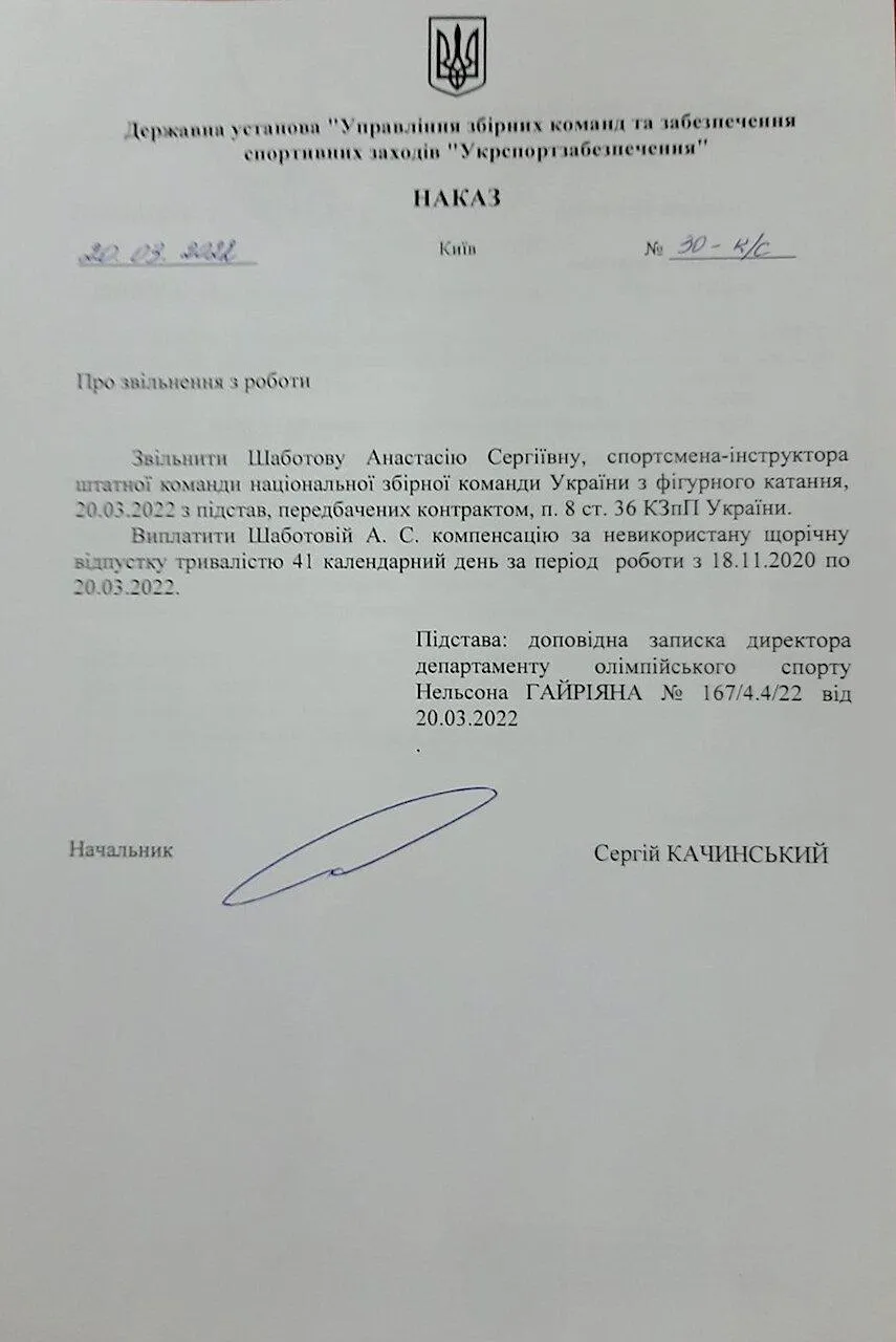 Причиною такого рішення стало те, що Анастасія Шаботова вподобала пост в інстаграмі відомого прихильника Путіна – росіянина Євгена Плющенка, у якому він підтримав вторгнення Росії до України.