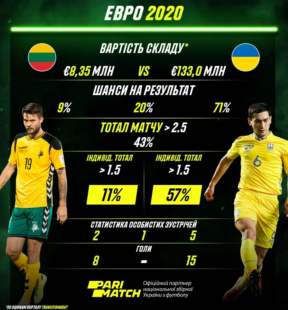 Якщо вірити експертам, то нас знову чекає позитивний результат. Аналітики Parimatch дають 79% на те, що переможе збірна України. Тут потрібно враховувати рівень суперників. Україна займає 25 місце у рейтингу ФІФА, а Литва лише 130-е. Та й наш склад за оцінками порталу transfermarkt коштує в 16 разів більше. У збірної України шість футболістів, які оцінюються дорожче, ніж всі гравці національної команди Литви.