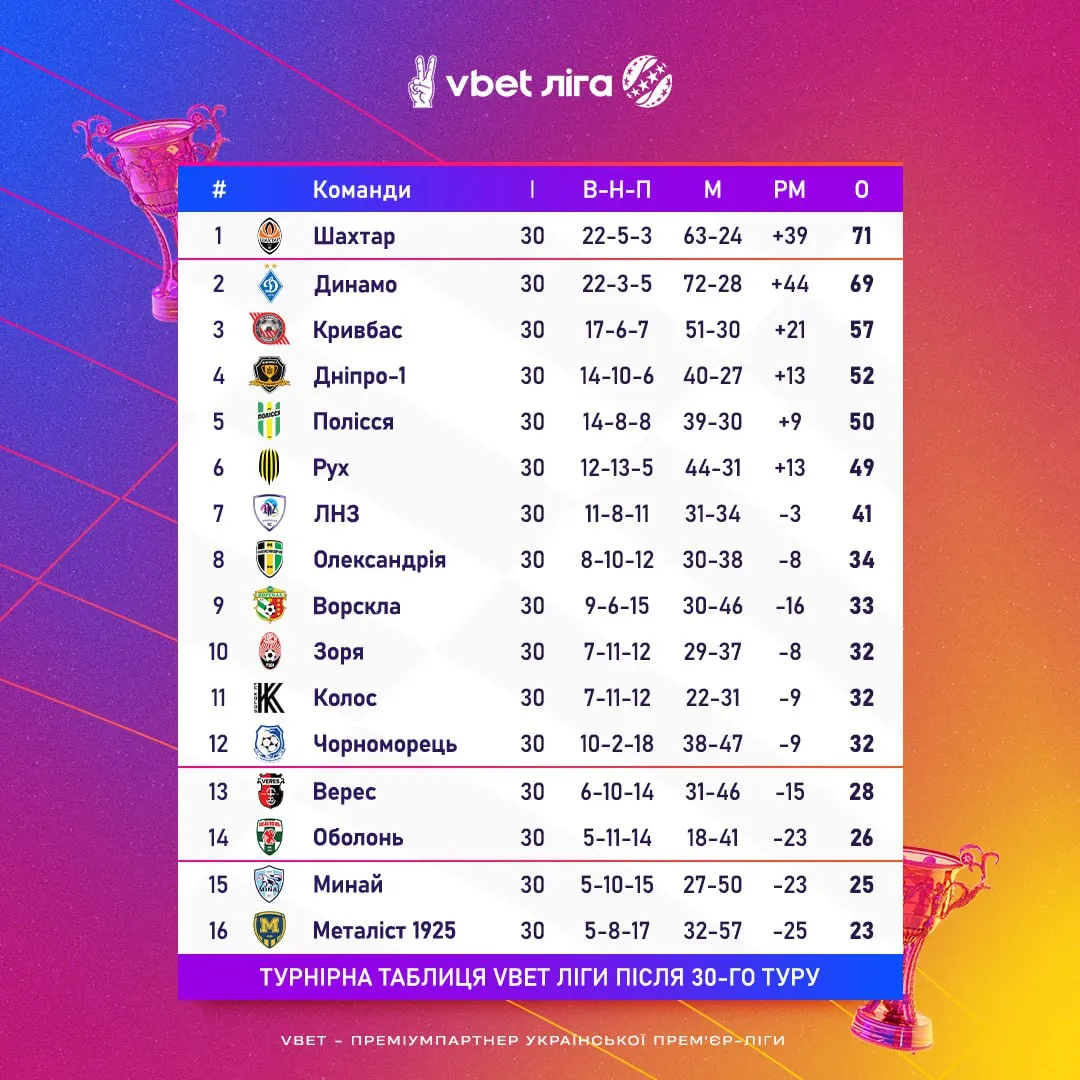 У попередніх турах Шахтар оформив чемпіонство, а Динамо та Кривбас здобули срібні та бронзові нагороди. А от доля двох путівок до Ліги конференцій, а також невдахи сезону стали відомі за підсумком останніх матчів.