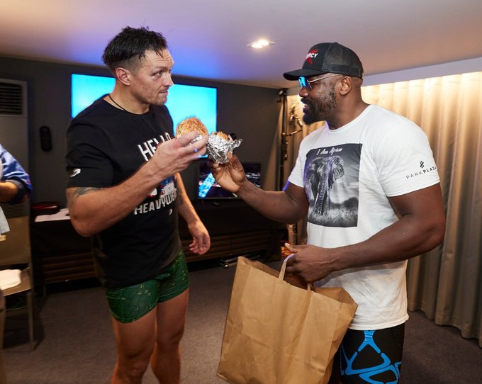Після бою боксери влаштували невеликий перекус в дружній атмосфері.