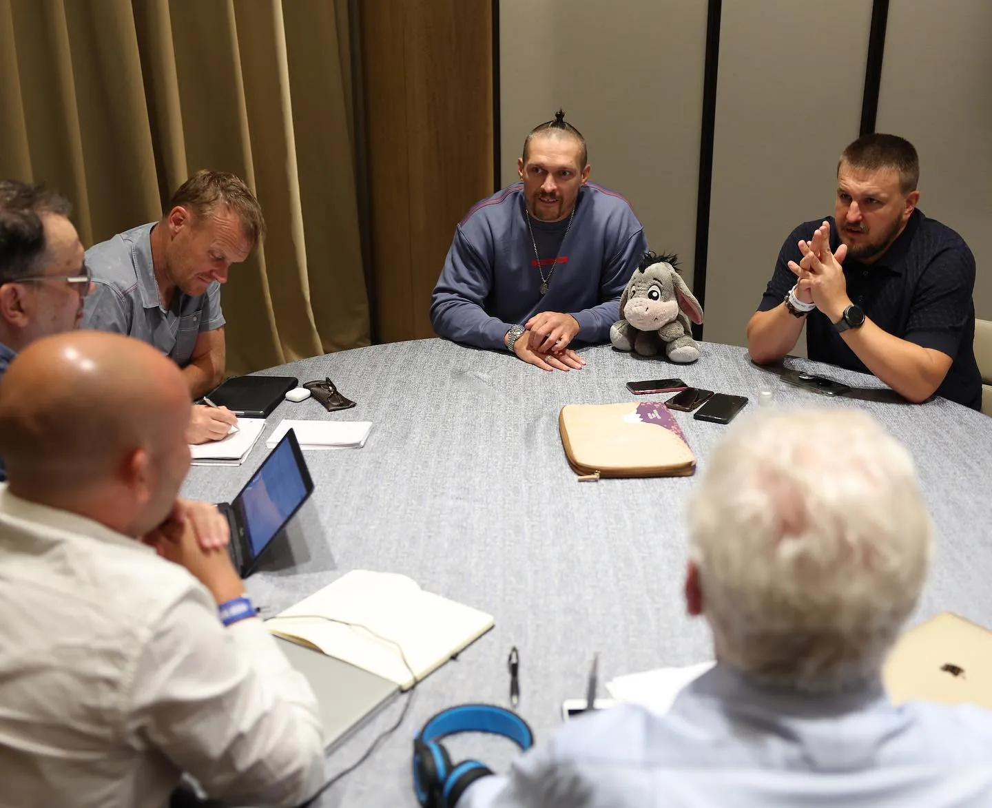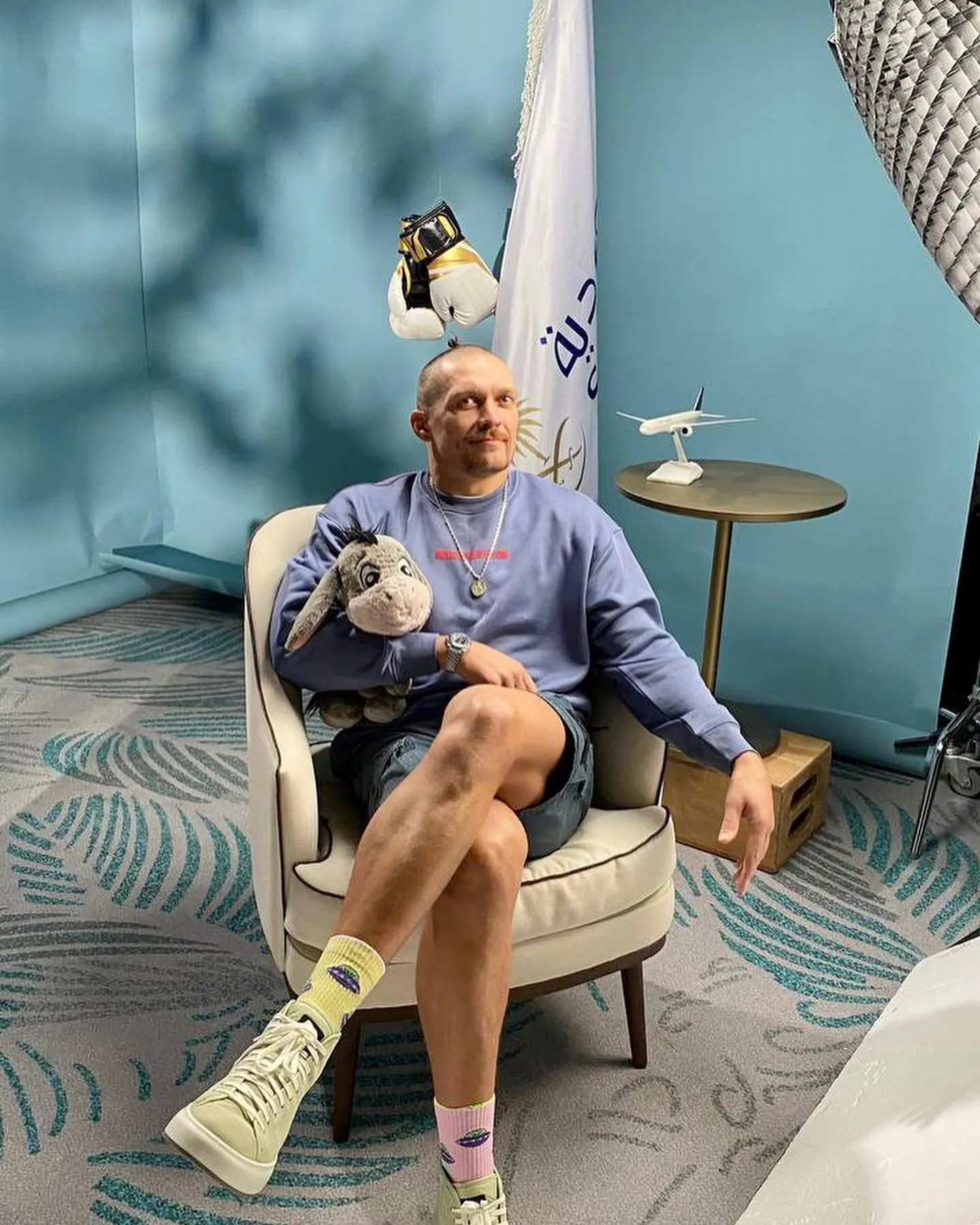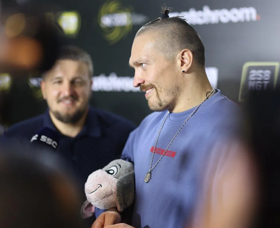 Весь цей час в Усика в руках був іграшковий віслючок. Виявилося, що це "Льоля" – талісман, який боксеру подарувала його донька Ліза.