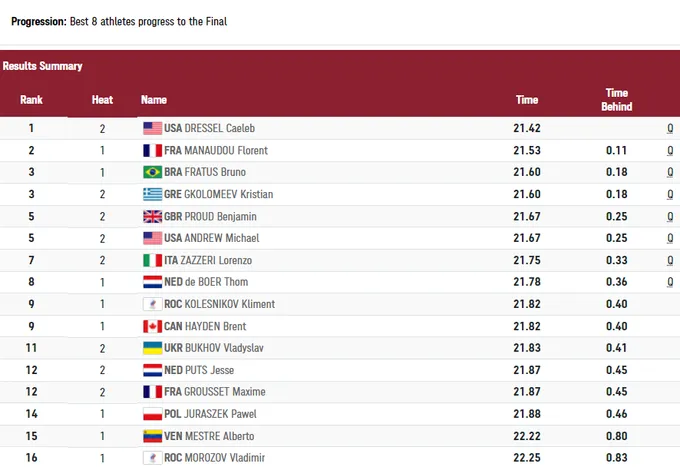 Бухов посів шосте місце (21.83) у другому півфінальному запливі на дистанції 50 метрів вільним стилем. Українець не зміг повторити свій результат з кваліфікації – 21.73 секунди – цього йому б вистачило для потрапляння у фінал.