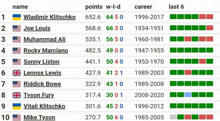 Портал поставив Володимиру 652.6 бала, це більше на сотню, ніж у Мохаммеда Алі, і майже на чотири сотні більше, ніж у Майка Тайсона.