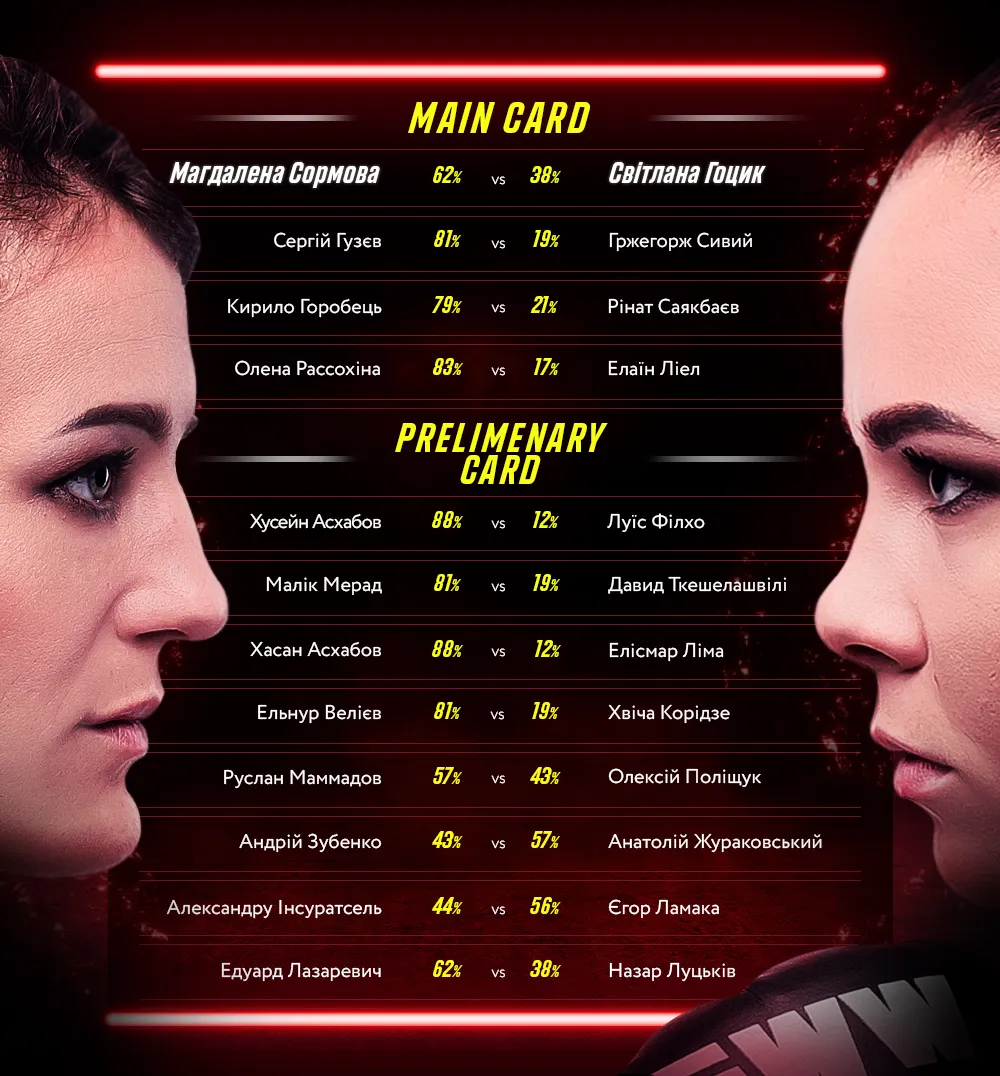 Серед них і довгоочікуваний реванш Світлани Гоцик проти Магдалени Сормової, з прогнозами від експертів Parimatch на який можна ознайомитись за посиланням.