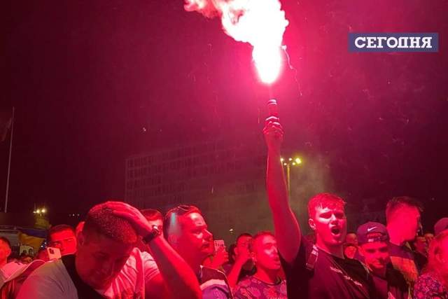 А після оголошення остаточного рахунку, вони скандували "Україна". До слова, останні хвилини матчу Україна – Англія вболівальники зустріли вогнем. У фан-зоні вони підпалили піротехніку.