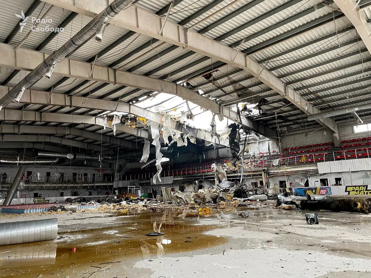 Як виглядає льодова арена "Альтаїр" після обстрілів / фото Сергій Горбатенко