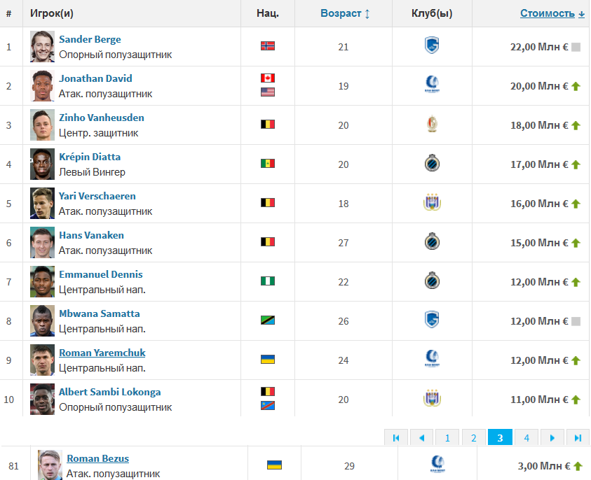 Це дозволяє йому перебувати в топ-10 найдорожчих футболістів бельгійського чемпіонату.