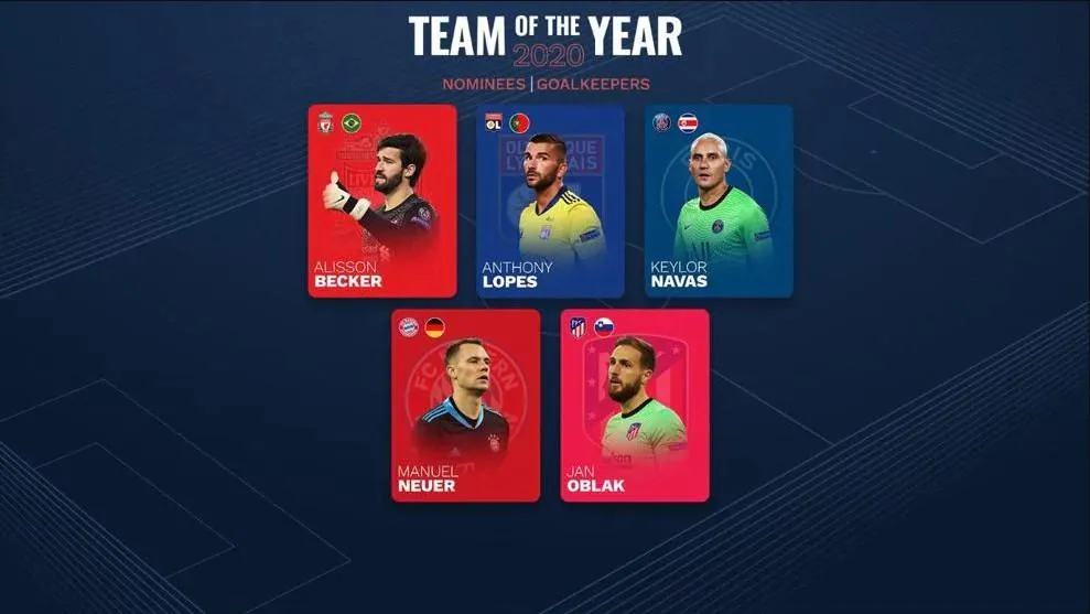Загалом в УЄФА назвали 50 імен футболістів, які є серед номінантів на потрапляння до збірної 2020 року. Серед них 5 воротарів та по 15 захисників, півзахисників та форвардів.