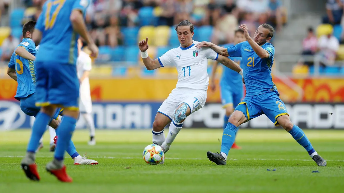 На 51-й хвилині Пінамонті міг виводити італійців вперед. Він виграв боротьбу в українського захисника та виходив на ворота Луніна. Але пробив невпевнено, і голкіпер відбив м’яч.
