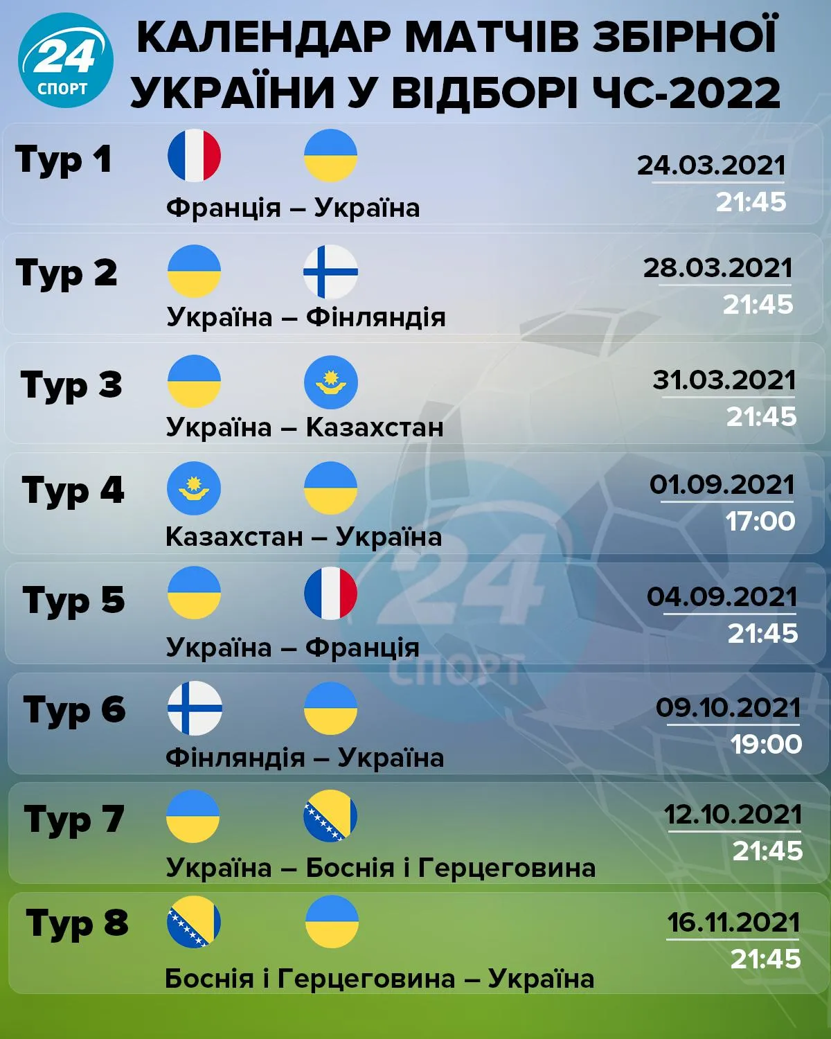 Календар матчів збірної України в кваліфікації ЧС-2022 / Інфографіка 24 каналу