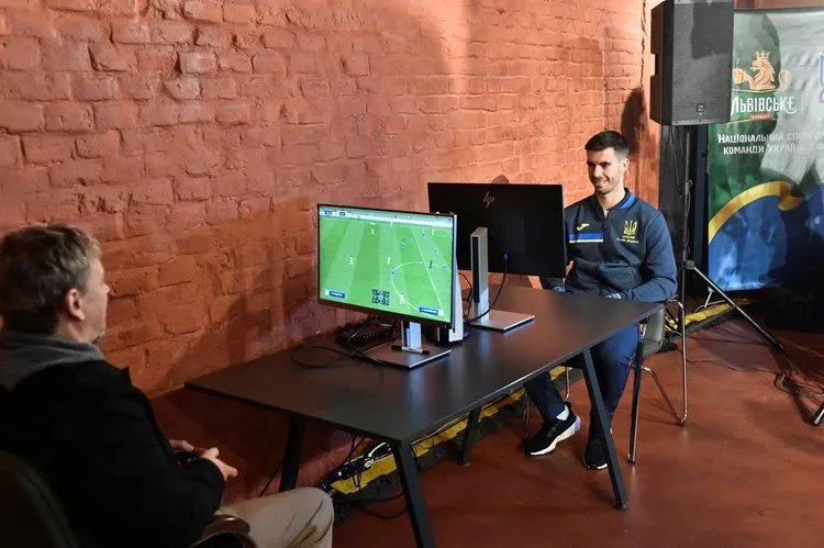 Уже за годину, одразу після офіційної передматчевоі пресконференції наставника "синьо-жовтих" Олександра Петракова та двох гравців у музейно-культурному комплексі "Львіварня", відбулася офіційна презентація України у грі FIFA, в якій, зокрема, взяли участь збірники Роман Яремчук та Ігор Харатін.