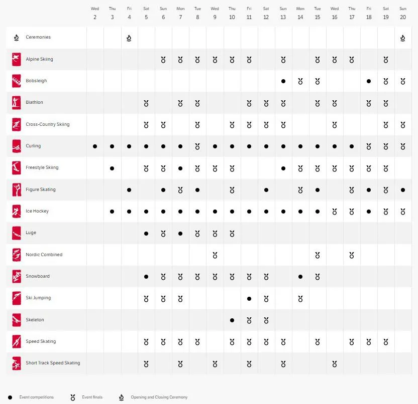 Розклад змагань на Олімпіаді 2022 / Ілюстрація olympics.com