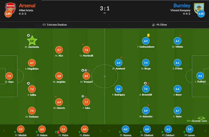 Оцінки гравців у матчі Арсенал – Бернлі / WhoScored