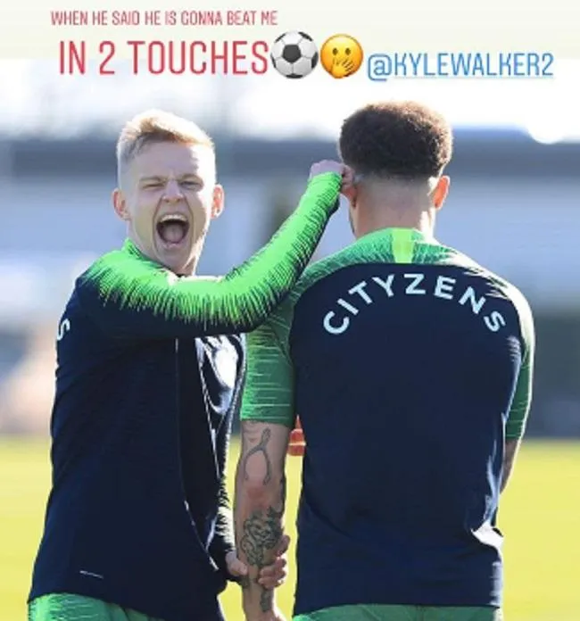 На тренуванні після фіналу Кубка ліги Зінченко позмагався в триманні вгорі м'яча із зірковим Кайлом Уокером.