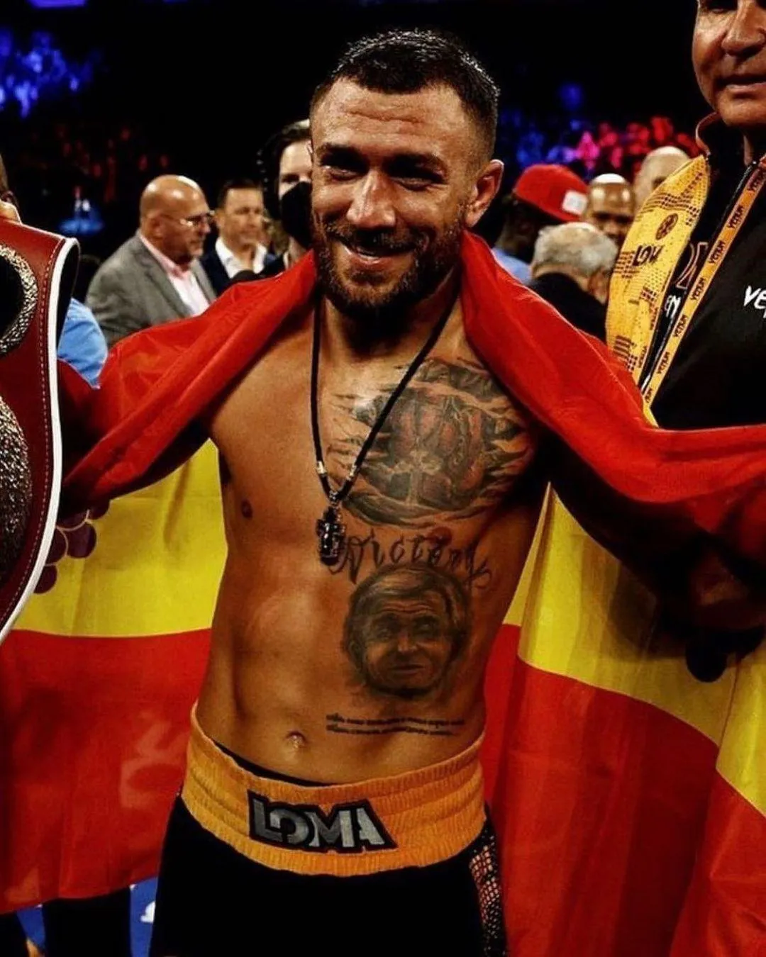 Святкуючи перемогу, Ломаченко з'явився у ринзі з прапором, проте не звичним для останніх боїв синьо-жовтим. Василь закутався у смугастий стяг, який нагадує прапор Іспанії.