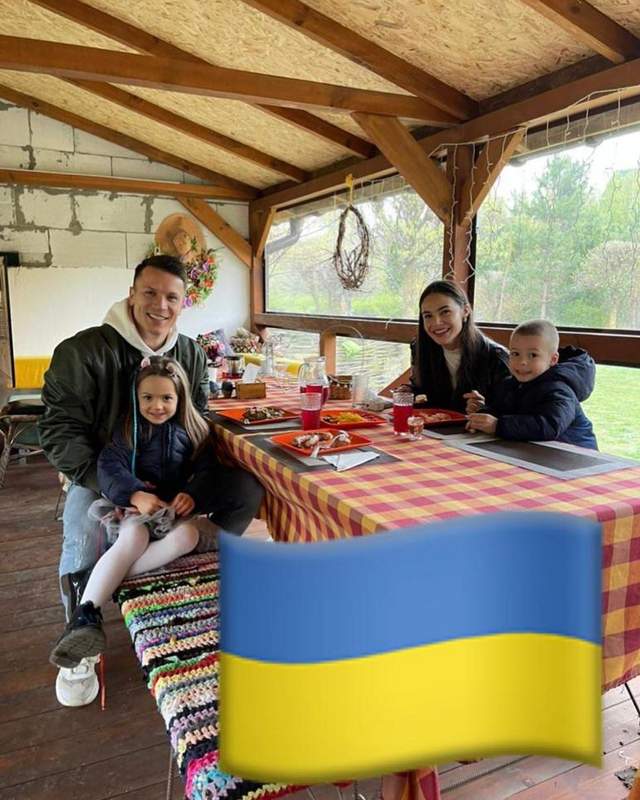 Футболіст виклав світлину з родиною та додав український прапор. Зараз Коноплянка перебуває далеко від сім'ї, тому хвилюється за родину. Євген заявив, що завжди будував плани своєї родини з рідною країною, будував майбутнє без російських загарбників.